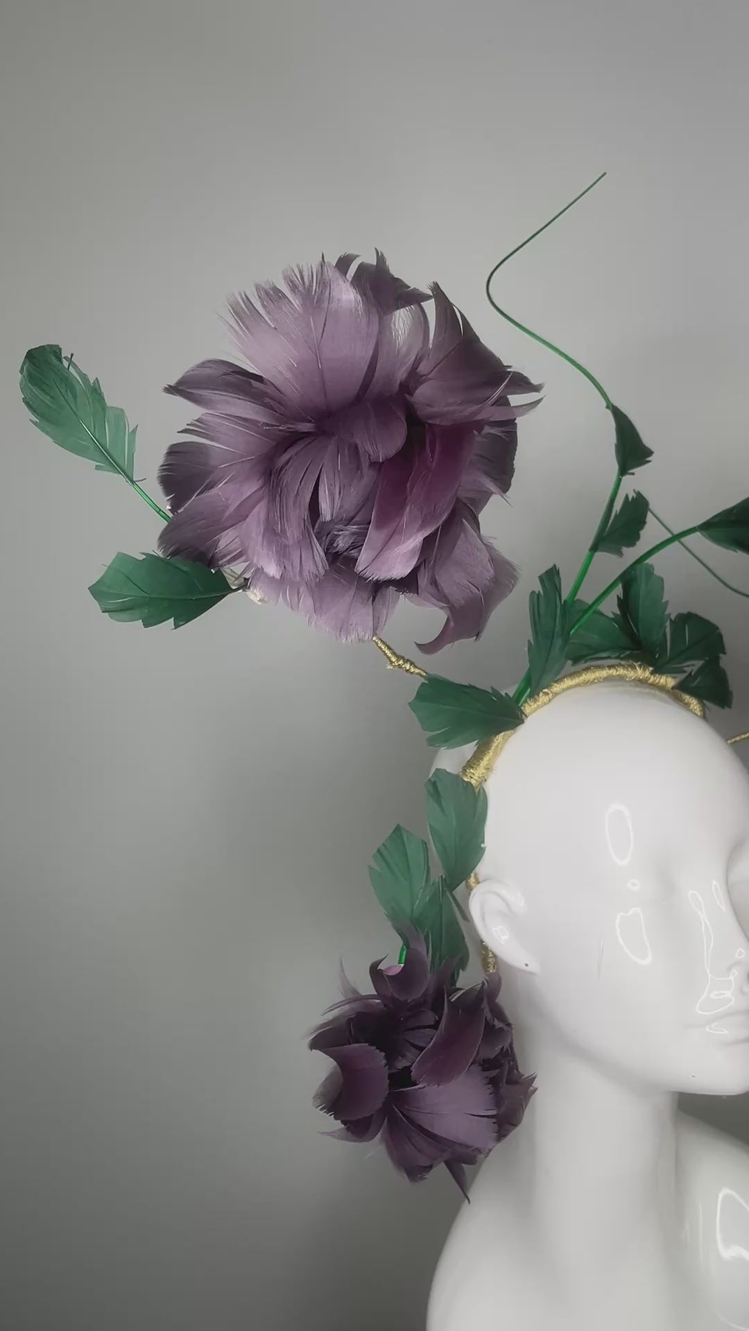 Each feather flower tells its own story, evolving from a delicate bud into a radiant blossom, symbolizing confidence and feminine strength. This couture fascinator is light yet dramatic, with movement that catches the light and the eye from every angle.