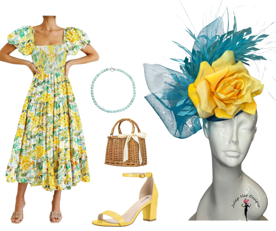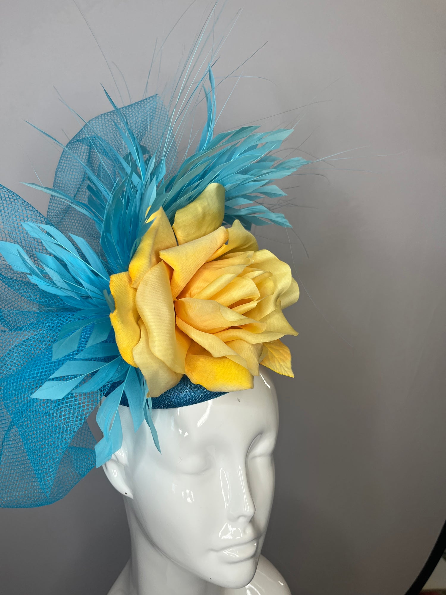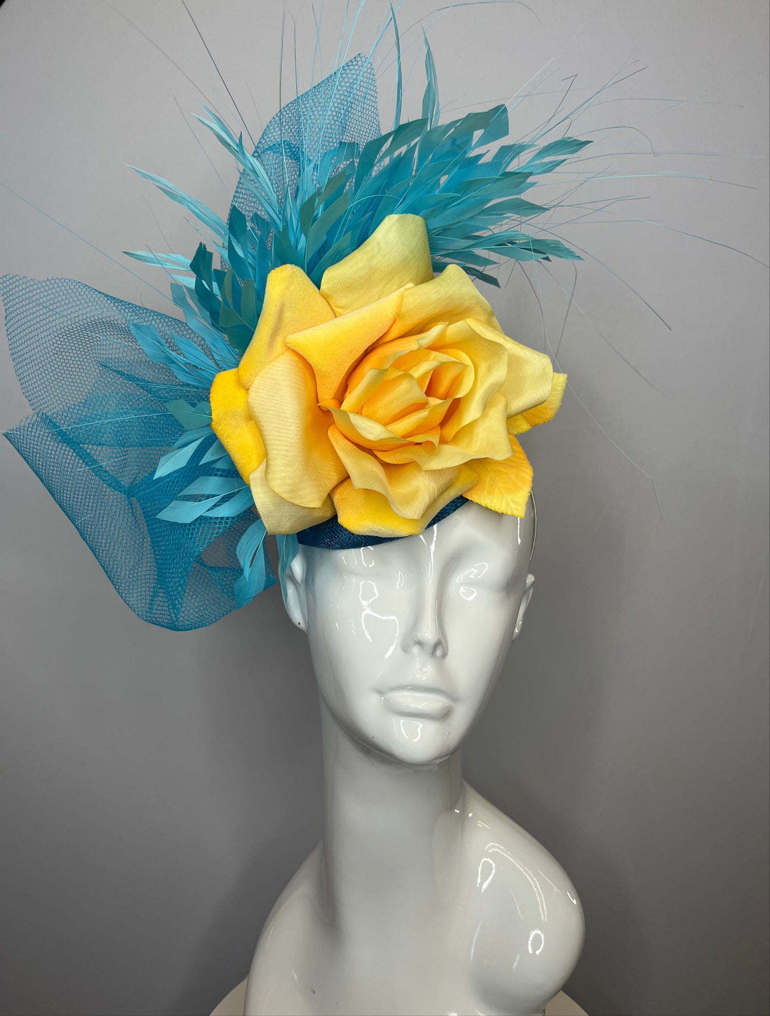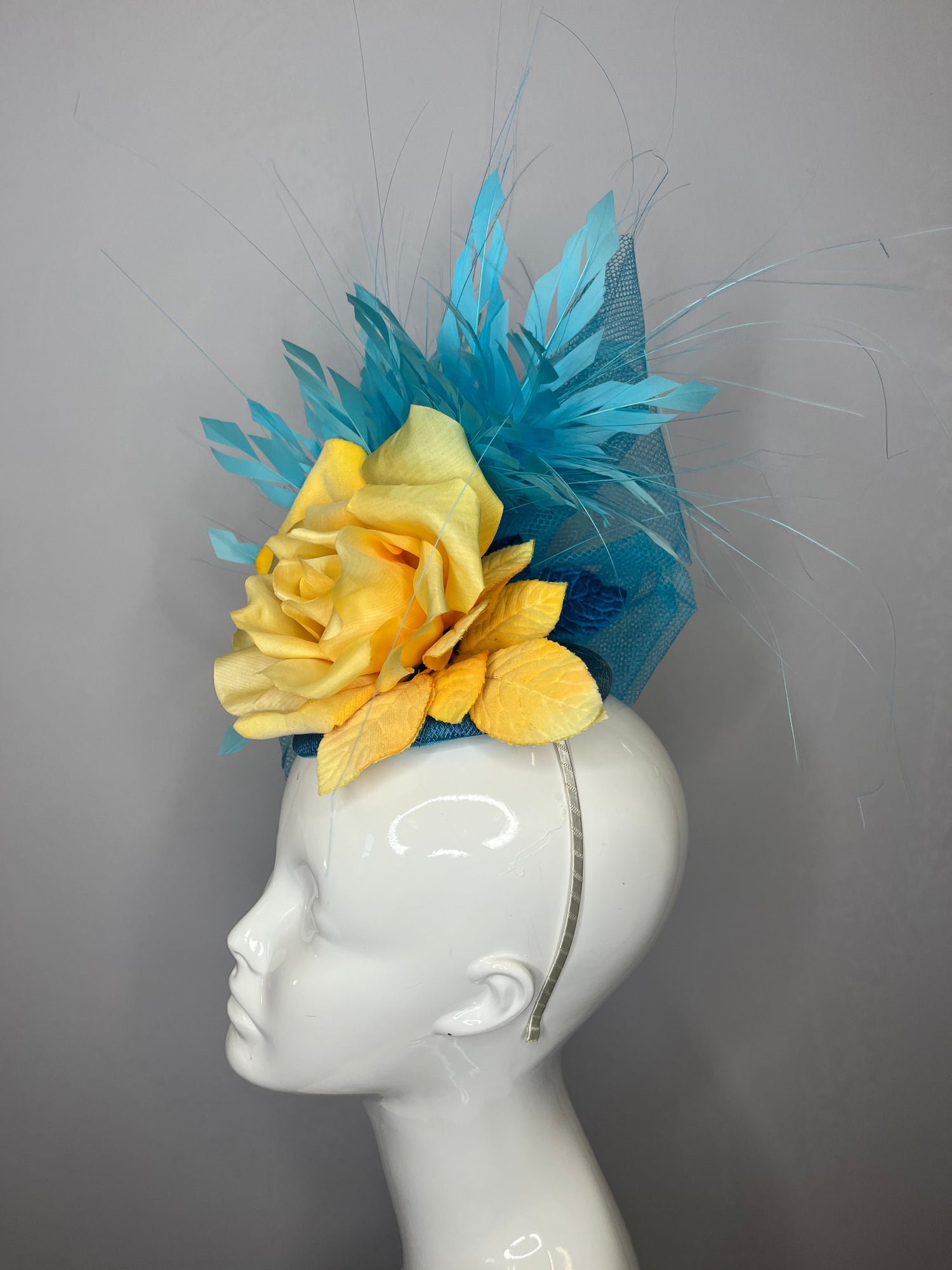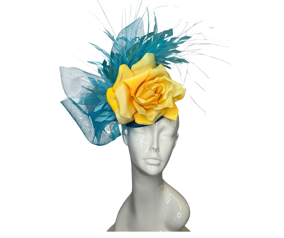Turquoise Blue and Yellow Rose Fascinator Hat