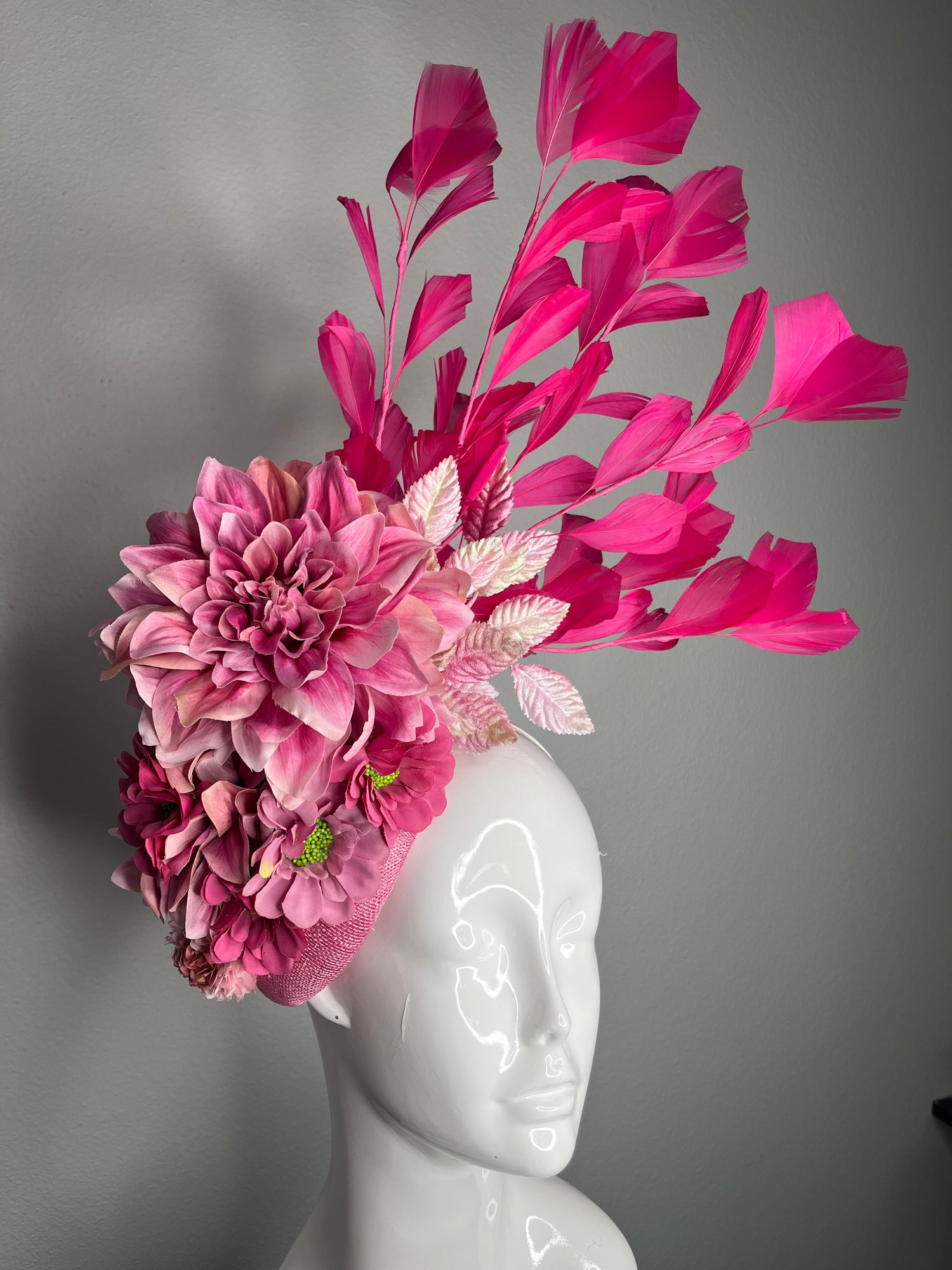 Hot Pink Dahlia Bloom Statement Fascinator Couture Feather Headpiece Kentucky Derby Hat |Oaks Day Fascinator