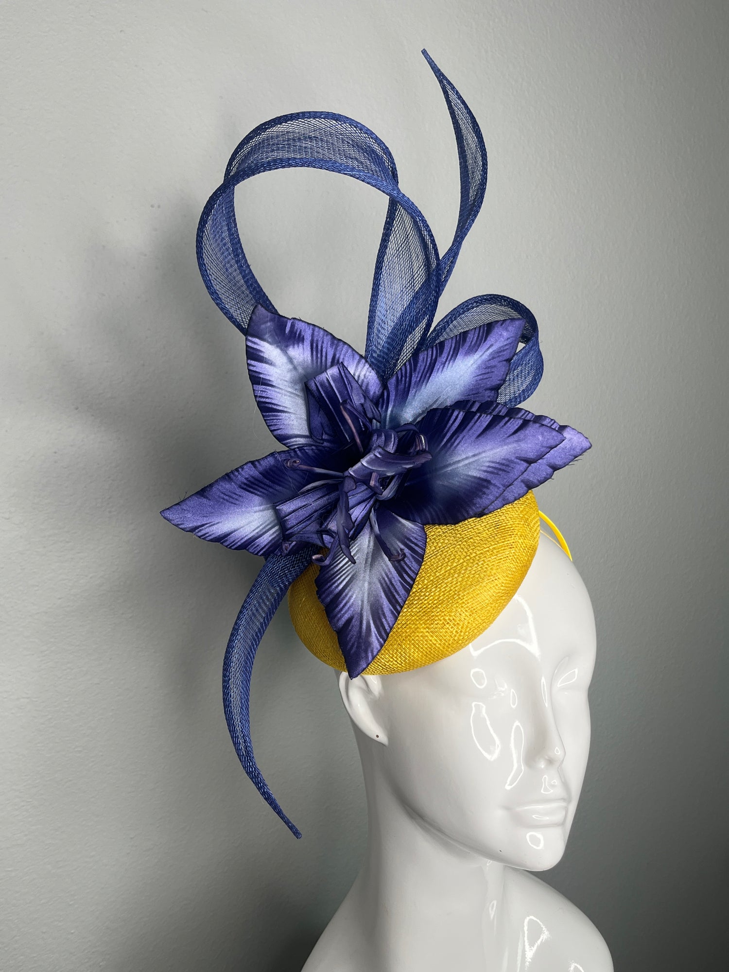 Navy and Yellow Sinamay Statement Headpiece Fascinator Hat