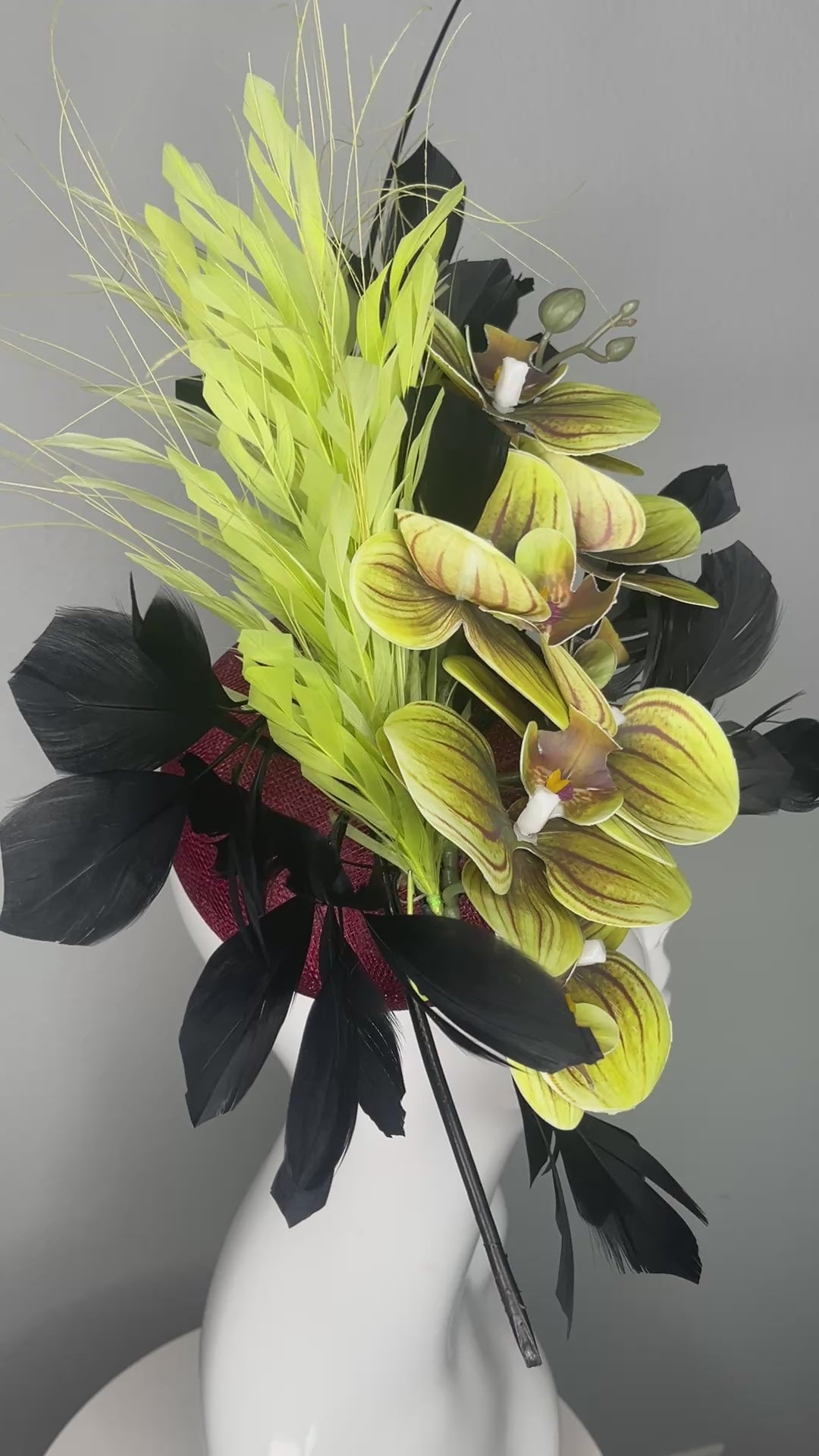 Orchid Noir Fascinator Exotic Lime Green and Black Statement Headpiece Fascinator