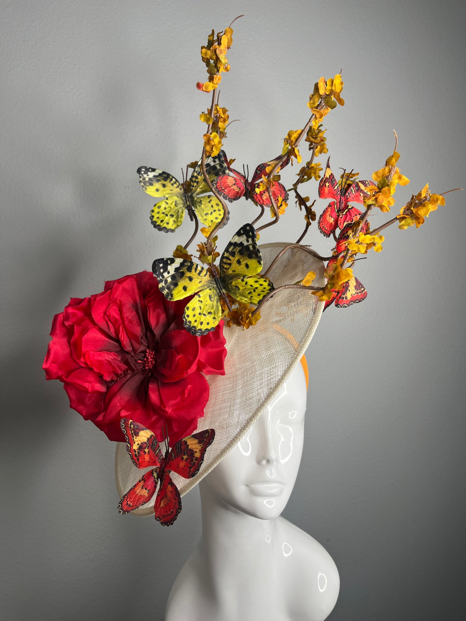 Red and Yellow Butterfly Bloom Fascinator