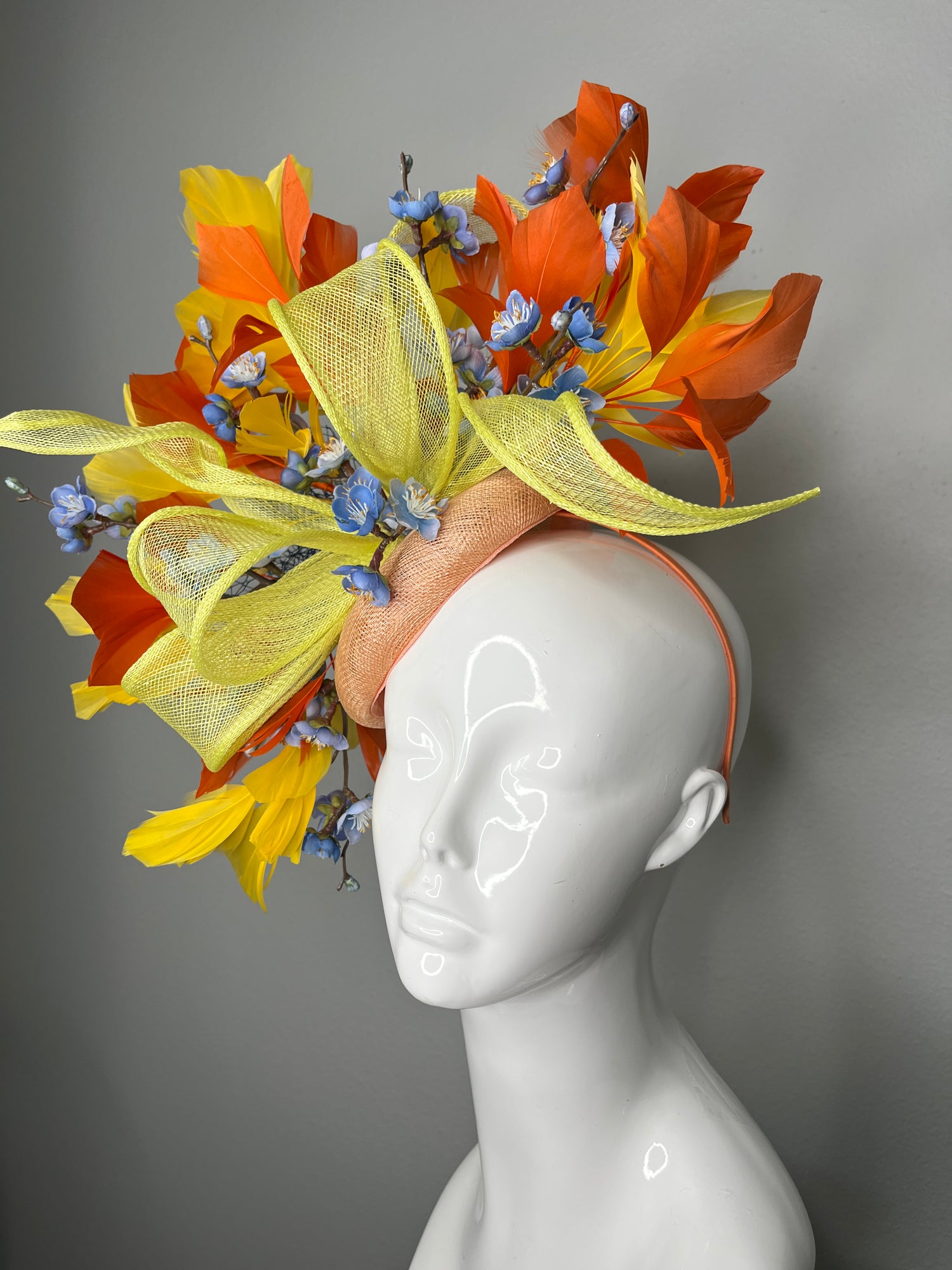 Yellow and Orange Sunshine Serenade with Blue Florals Fascinator Hat